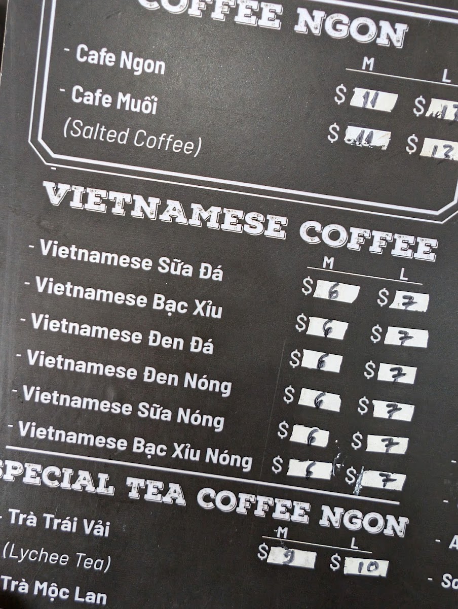 - Vietnamese Coffee: Specialty coffee selections include traditional Vietnamese iced coffee (Vietnamese Sữa Đá), hot milk coffee (Cà Phê Sữa Nóng), as well as unique options like egg coffee and salt coffee.